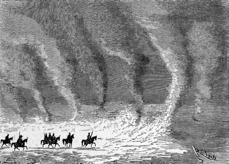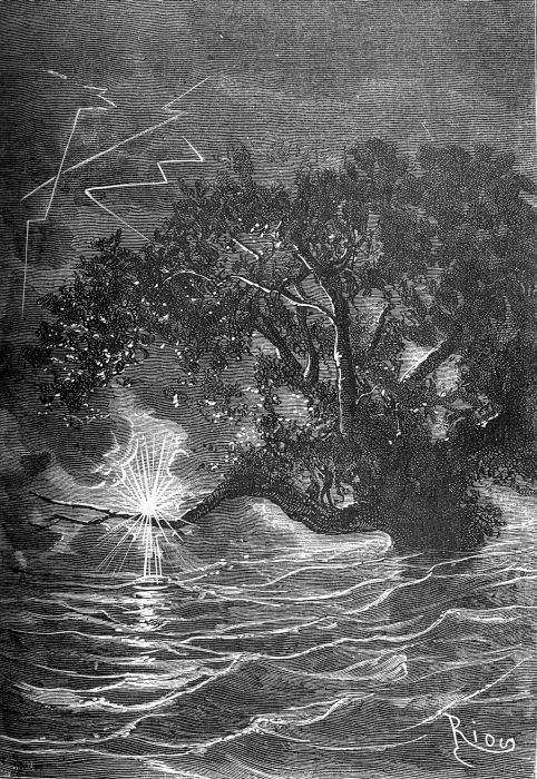 Flashes of lightning, the dazzling forerunners of a coming storm, every now and then illumined the horizon.—p. 385.