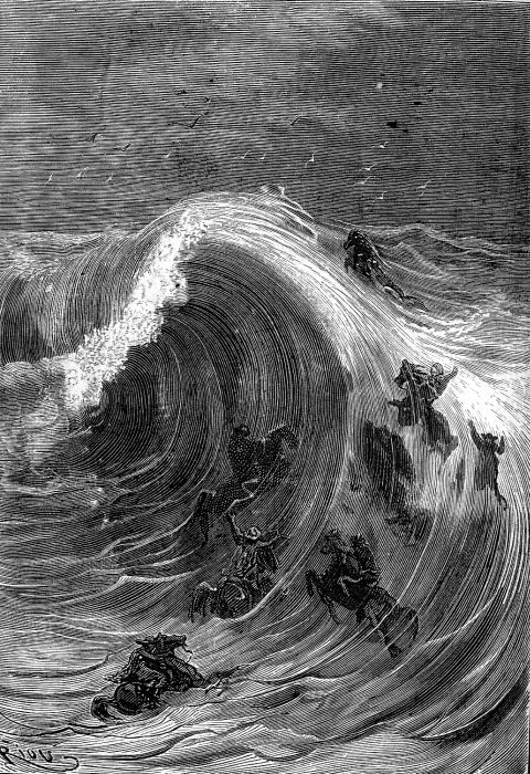 Then, impelled by the hurricane, the billows outran her; they leaped over the taffrail, and the whole deck was swept with tremendous violence.—p. 276.