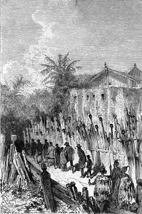 On their arrival, the captives were terribly impressed at sight of the heads that ornamented the stakes of the second inclosure.—p. 505.