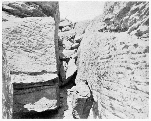 After a long and tiresome journey of four days we arrive at the foot of the mesa and begin the long, upward climb, for Oraibi is eight hundred feet above the surrounding plain and seven thousand feet above the level of the sea. Just before the crest is reached[Pg 737] the trail for fifty or more feet is simply a path along and up the base of a rocky precipice, its steps worn deep by the never-ending line of Indians passing to and fro. Once upon the summit we have an unobstructed view over the dry, arid, sun-parched valleys for many miles—a view which, in spite of its desolation, is extremely fascinating.