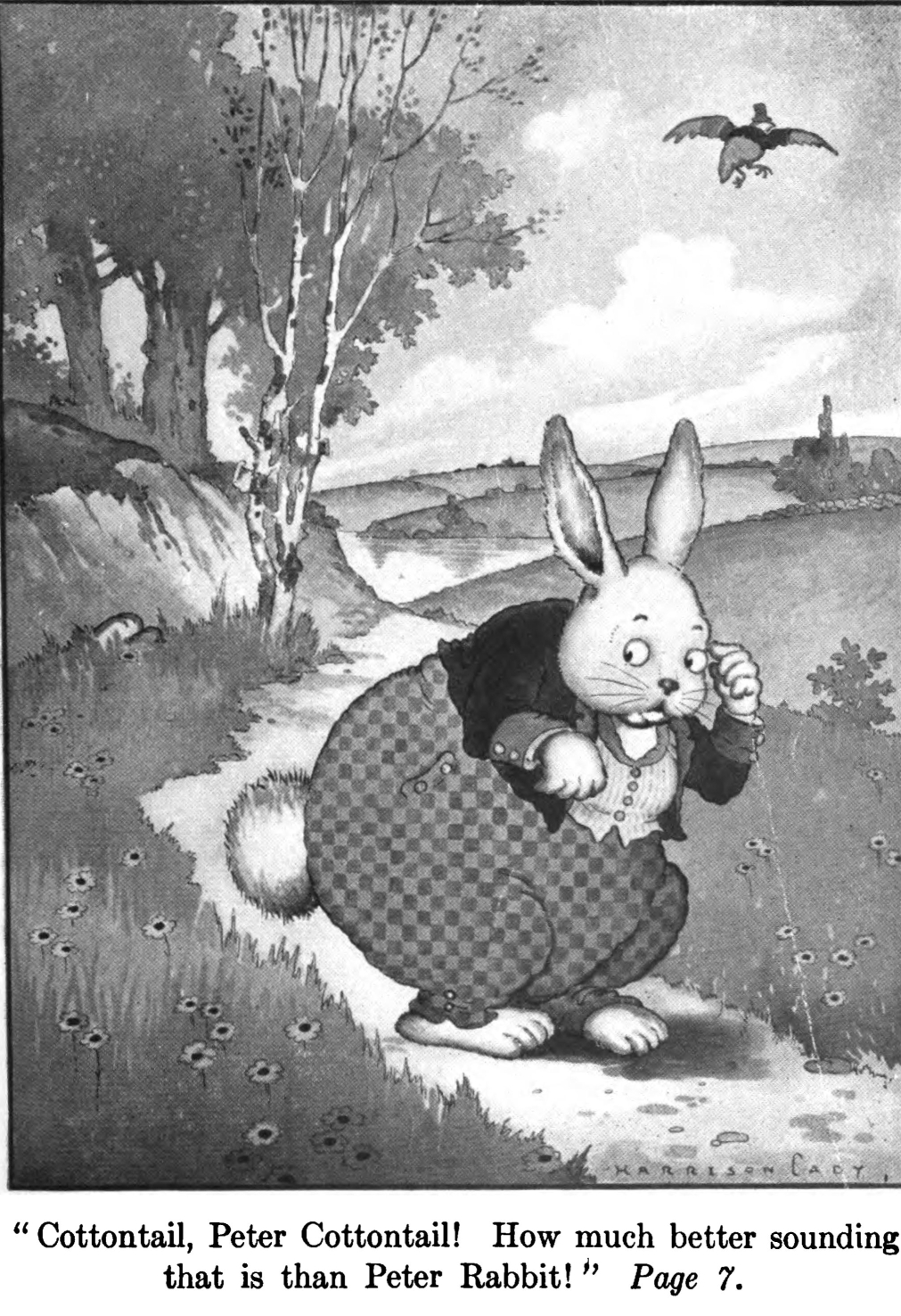 At first Peter didn't understand that Ol' Mistah Buzzard was speaking to him, and by the time he did it was too late to reply, for Ol' Mistah Buzzard was way, way up in the blue, blue sky. "Cottontail, Cottontail." said Peter over and over to himself and began to smile. Every time he said it he liked it better.