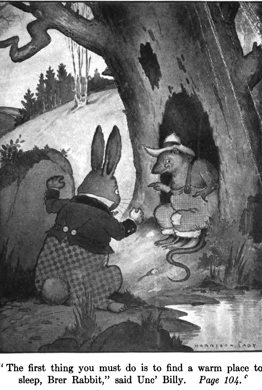 "The first thing yo' must do is to find a warm place to sleep, Brer Rabbit," said Unc' Billy.