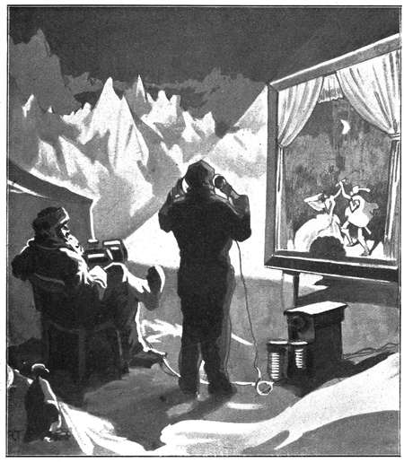 Die Stücke, die in London gespielt werden, werden selbst im ewigen Eis der Arktis oder Antarktis mittelst Fernseher und Fernsprecher auf einem Schirm reproduziert werden.