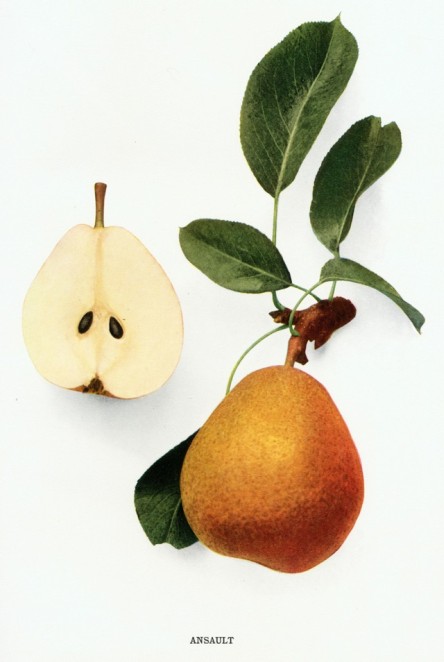 “There is no tree among all those planted which abounds so much in kinds of fruits as the pear tree, whose different sorts are innumerable and their different qualities wonderful. For from the month of May to that of December pears good to eat are found on the trees. In considering particularly the different shapes, sizes, colors, flavors, and odors of the pear, who will not adore the wisdom of the creator. Pears are found round, long ‘goderonnees’[3] pointed, blunt, small, and large. Gold, silver, vermillion, and satin green are found among the pears. Sugar, honey, cinnamon, clove, flavor them. They smell of musk, amber, and chive. In short, so excellent are the fruits that an orchard would not be worth while in a place where pear trees do not thrive.”