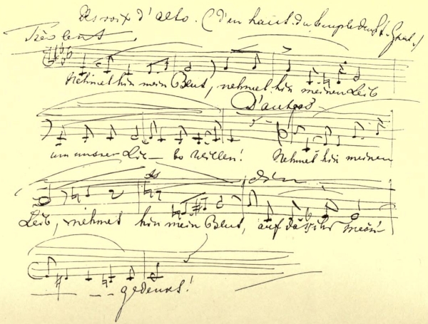 EXTRACT FROM ONE OF WAGNER'S LETTERS TO MADAME GAUTIER, SHOWING PART OF SCORE OF THE FIRST ACT IN "PARSIFAL."