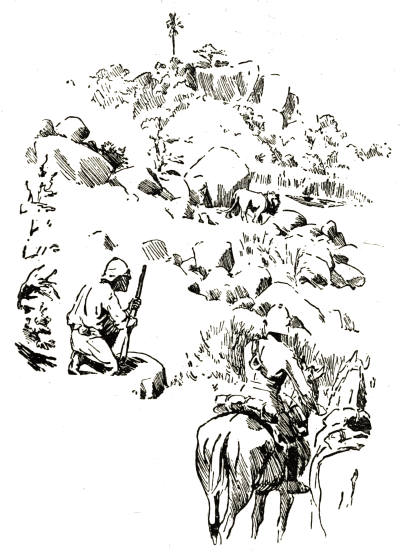 The enemy would come out on the rocks before a fight, and dance and work themselves up into a frenzy, shouting all sorts of epithets and insults at the troops.
