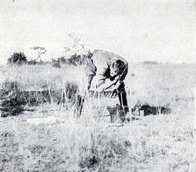 We saw some gold–washing done as the prospectors[486] do it. With a pestle and mortar the quartz is crushed to powder, and then washed in water in a shallow pan (which has a tip in it for the use of unskilful washers, for washing is a knack).