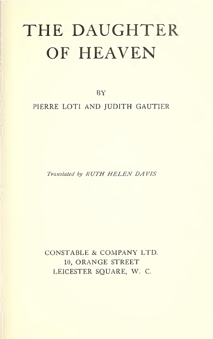 No aid? Do you think I would accept it? I have spoken only because I know I am going to die. Aid! But did I not tell you it was I who lighted the pyre, this hand which set to it the flaming torch. And as they threw themselves into the glowing furnace, dying for my son and for me, I cried out my solemn vow: Soon I come to the Land of the Shades, I come, I follow you. After that, if I were to live, to spend a happy life with you——I should loathe myself. [She remains seated, the EMPEROR kneels at her feet, resting his head on the cushions of the throne.] In entering your palace, I was afraid of myself, it was only myself that I feared——for at no time did I hate that strange impostor who appeared in my palace one day, never did I hate him even when I knew not, when I did not understand. And in the closed litter in which I was brought to Peking, at every stage of that mournful journey my fears and my anguish increased, according as the impression became stronger and stronger, until at last I was convinced that you were the Emperor! [Suddenly terrified, she starts up.] You have not deceived me? Tell me, it is indeed death which you have given me? Oh, no, you could not have done that. You are too noble to have led me into a trap——
