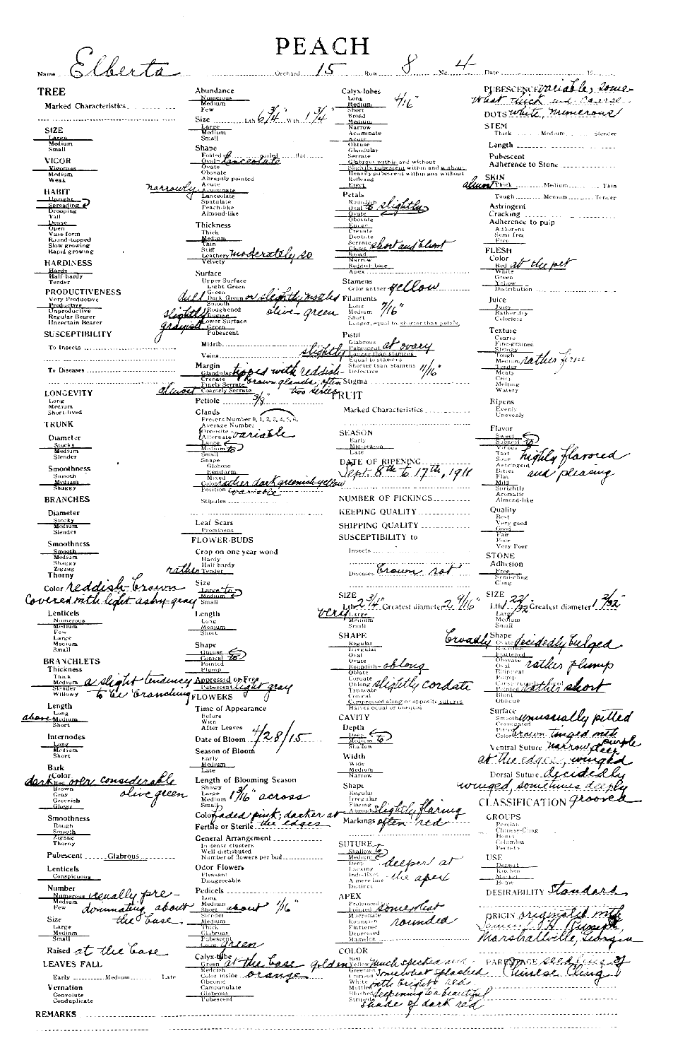 The references given are those that have been used in ascertaining the history and the economic status or in verifying the description of the variety that follows. All of the synonyms created by pomologists to whose works we have had access have been noted but in no case have we published synonyms quoted by other writers. The work of reading references and seeking out synonyms is a tremendous one, involving nearly three years' work for several persons. We hope that this work sets straight in high degree the great confusion in the names of peaches, but that we, no matter how painstaking, could bring perfection out of chaos, no one could expect.