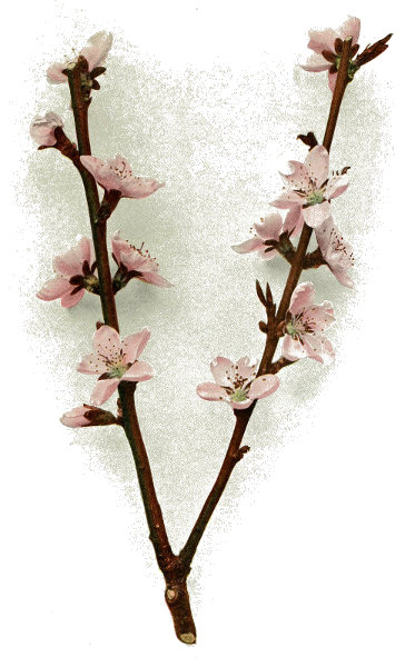 One of the most charming legends of peach flower lore is that of the 'Peach Blossom Fountain,' an allegory written by T'ao Yuan Ming between A. D. 365-427, describing how a fisherman got lost one day and penetrating up a river finds himself in a creek bordered with many peach trees full of bloom, at the end of which he comes upon a small mountain in which is a cave which he traverses and enters on a new country where there is every sign of prosperity, every one is courteous to each other, kindliness and contentment prevail, but they wear the garb of the times of the First Emperor some five centuries previous and have been lost to the rest of the country ever since. The fisherman returns after a sojourn with them, and tells his fellow villagers of this wonderful country and stirs up so much interest that finally the governor of the province joins in the search for this wonderful country, but it is all of no avail and at last the fisherman realizes that he will never more see the peach blossom days of his youth with its rosy dreams and ideals that come but once in a lifetime."