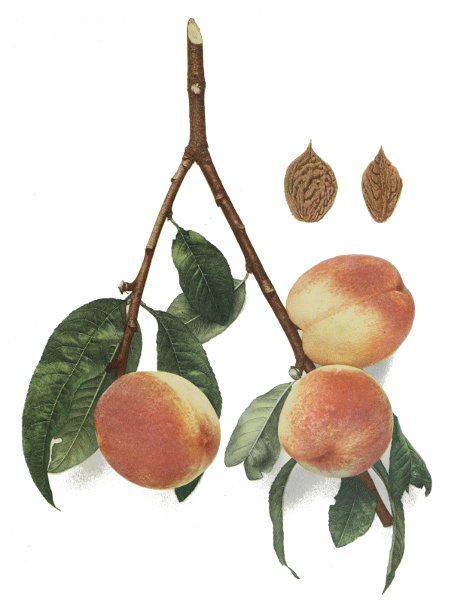 In all of these fruit-books it has been difficult to decide what varieties merit color-plates and full descriptions. Briefly, the choice of sorts to be illustrated and described in detail has been determined by the following considerations: (1) By the value of the variety for home or commercial orchards; (2) the probable value if the peach is a new sort on probation; (3) its desirability as a parent in breeding new peaches or to show combinations of varieties, to illustrate new characters, or to show the range in variation—in a word to enlighten the peach-breeder; (4) not a few varieties are described and illustrated to show the trend of peach-evolution—for their historical value; (5) to show relationships of varieties.