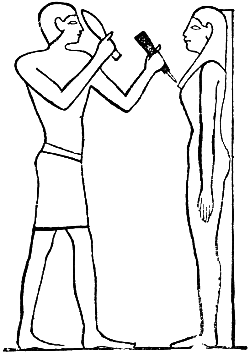 Chapter I. (Page 1.) The goddess of victory in the form of a vulture holding a flabellum or fan of feathers and a signet-ring in each claw.