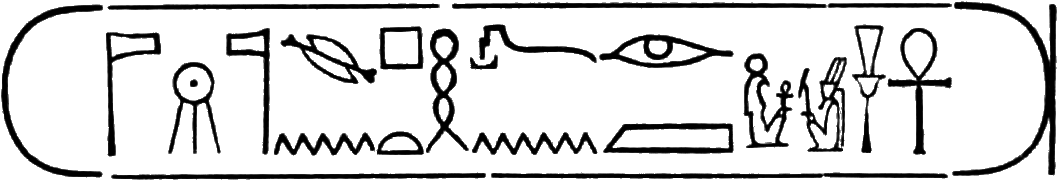 This is the longest of any Egyptian cartouche, and is written in two vertical columns. It stands for the second cartouche given on page 36.