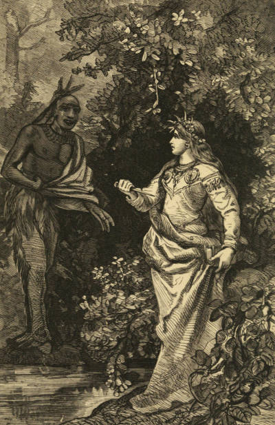 [24] The name of Tamenund is doubtless familiar to all Americans who have taken the slightest interest in the history of the Indian tribes, as well as to that more numerous class who have read the graphic and picturesque descriptions penned by the great American novelist: nevertheless, it may be necessary, for the information of some European readers, to state that Tamenund was an ancient Lenapé chief, whose traditionary fame is so great in the tribe, that they have from time to time given his name to chiefs, and even to white men whom they desired especially to honour. At the time of the revolutionary war, so numerous were the traditions and legends respecting this hero, that he was in some quarters established as the patron saint of America, under the name of St. Tammany; and hence arose the Tammany societies and Tammany buildings in various parts of the Union.—See Heckewalder’s Historical Account of the Indian Nations, chap. xl., and The Last of the Mohicans, vol. iii. p. 152, &c.
