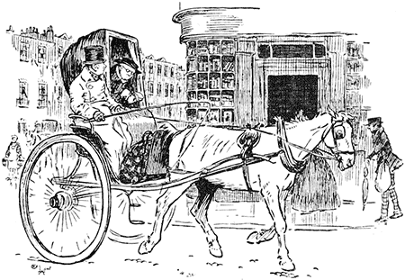 “No, that he hadn’t, my dear,” said Mr. Weller; “and if you’d put an exact model of his own legs on the dinin’ table afore him, he wouldn’t ha’ known ’em. Well, he always walks to his office with a wery handsome gold watch-chain hanging out, about a foot and a quarter, and a gold watch in his fob pocket as was worth—I’m afraid to say how much, but as much as a watch can be—a large, heavy, round manafacter, as stout for a watch, as he was for a man, and with a big face in proportion. ‘You’d better not carry that ’ere watch,’ says the old gen’l’m’n’s friends, ‘you’ll be robbed on it,’ says they. ‘Shall I?’ says he. ‘Yes, you will,’ says they. ‘Vell,’ says he, ‘I should like to see the thief as could get this here watch out, for I’m blest if I ever can, it’s such a tight fit,’ says he; ‘and venever I wants to know what’s o’clock, I’m obliged to stare into the bakers’ shops,’ he says. Well, then he laughs as hearty as if he was a-goin’ to pieces, and out he walks agin, with his powdered head and pigtail, and rolls down the Strand vith the chain hangin’ out furder than ever, and the great round watch almost bustin’ through his grey kersey smalls. There warn’t a pickpocket in all London as didn’t take a pull at that chain, but the chain ’ud never break, and the watch ’ud never come out, so they soon got tired o’ dragging such a heavy old gen’l’m’n along the pavement, and he’d go home and laugh till the pigtail wibrated like the perderlum of a Dutch clock. At last one day the old gen’l’m’n was a-rolling along and he sees a pickpocket as he know’d by sight, a-comin’ up, arm in arm vith a little boy with a very large head. ‘Here’s a game,’ says the old gen’l’m’n to himself, ‘they’re a-goin’ to have another try, but it won’t do!’ So he begins a-chucklin’ wery hearty, ven all of a sudden, the little boy leaves hold of the pickpocket’s arm, and rushes head foremost straight into the old gen’l’m’n’s stomach, and for a moment doubles him right up vith the pain. ‘Murder!’ says the old gen’l’m’n. ‘All[446] right, sir,’ says the pickpocket, a-whisperin’ in his ear. And when he come straight agin, the watch and chain was gone, and what’s worse than that, the old gen’l’m’n’s digestion was all wrong ever arterwards, to the wery last day of his life; so just you look about you, young feller, and take care you don’t get too fat.”