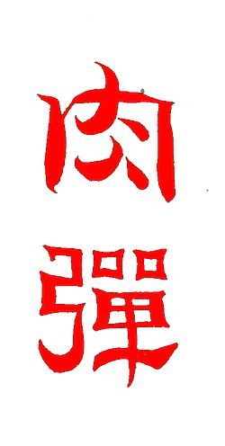 —Illustration of title page are Japanese characters (kanji) for “Human Bullet”.