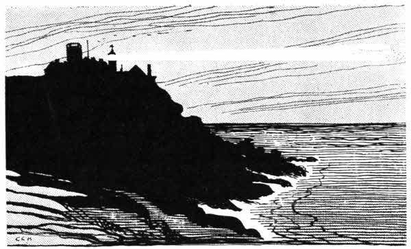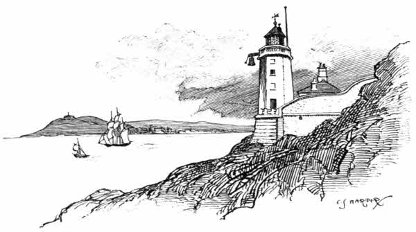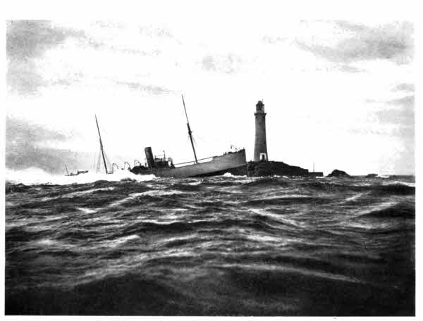 Standing on the Garrison at night, the lights of many lighthouses and lightships are visible. There, on the almost exactly hemispherical outline of Round Island, is the lighthouse that shows a red flash; the Seven Stones lightship is out far beyond; St. Agnes light flashes on its island, south-east; and behind it, four and a half miles away, is the lonely Bishop lighthouse, completed in 1858, and said by some to be exposed to worse weather and more terrific seas than any lighthouse in the world. The lighthouse on St. Agnes is one of the oldest, if not actually the oldest, in the service. It was built in 1680.