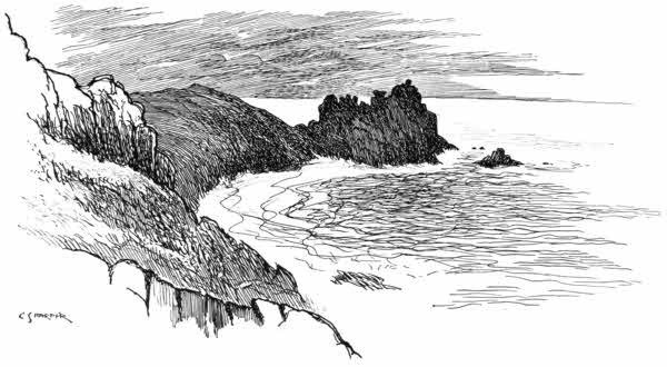 There[236] is an excellent good climb for the young and active and the reckless down from this grim granite promontory of Trereen Dinas to an exquisitely secluded sandy cove, and thence up again, and over more tumbled hummocks of the all-pervading granite, to the sandy and shelly shore of Porthcurno, properly Porth Kernow, the "Port of Cornwall."
