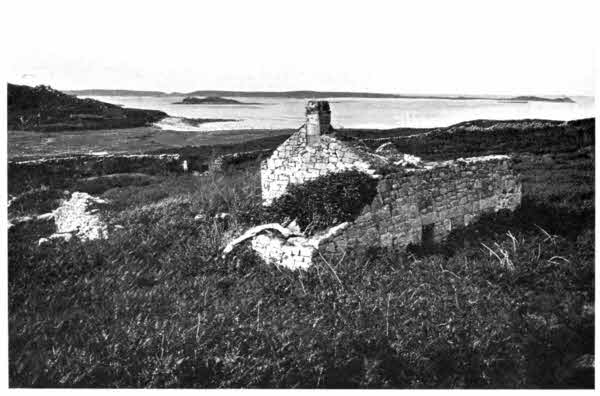From hence one best sees the island of Samson, two miles and a half distant, lying directly in front of the setting sun. Samson is an island of singular appearance, consisting of two hills joined by a low belt of land. Its name probably derives from that sainted sixth-century Bishop of Dôl, who has given his name to St. Sampson's (or Samson), Golant. There are some ruined houses on Samson, sole relics of the fifty people who once lived on it, and were deported to other islands by the autocratic Augustus Smith. And on Samson's northern hill are no fewer than eleven large sepulchral barrows. But if one wants to learn much about Samson and about the Isles of Scilly,[266] glorified by romance, it is to the pleasant pages of Sir Walter Besant's novel, "Armorel of Lyonesse," one must go. There is no better book to read at Scilly. But Armorel's wonderful old home at Holy Hill is not in being, although photographs show the ruined walls of a house more or less identified with it. Besant no doubt took as his model the flower-farm at Holy Vale, in the centre of St. Mary's Island.