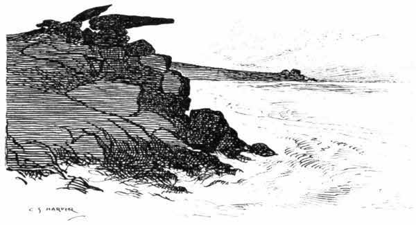 Past this, the point of Carn Voel is reached, with the "Lion's Den" cavern. Ahead, the heights of Pardenick Point rise in columnar majesty, the point whence Turner painted his view of the Land's End, that extraordinarily fantastic and darkling composition, in which the rocks on the hillsides look more like sheep than rocks.