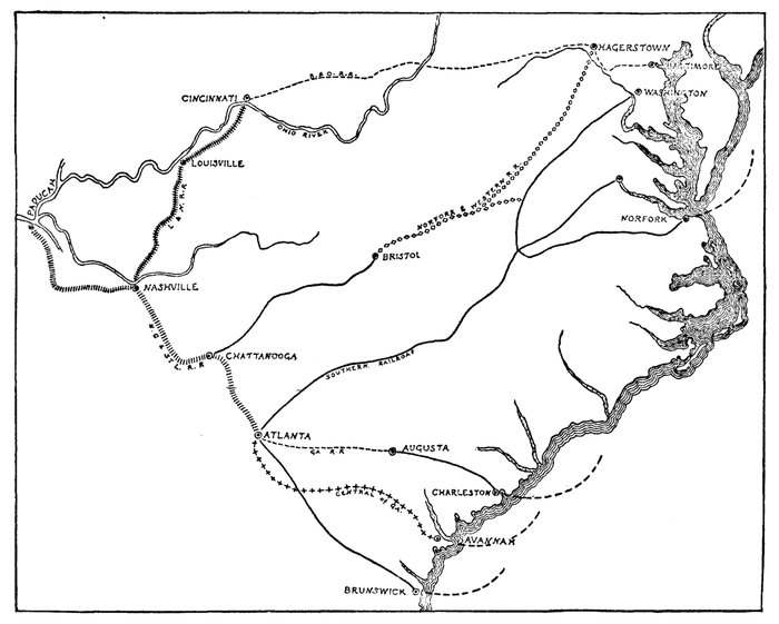 Water competition, by coastwise steamers to Chattanooga, 232, 359, 475;