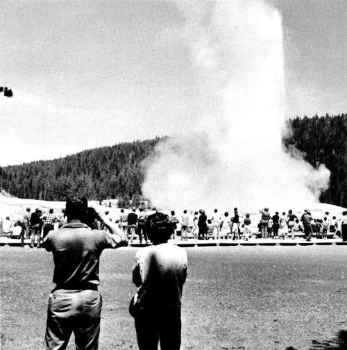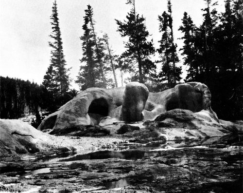 The photographs in this section of the booklet were selected from those taken by William Henry Jackson during Hayden’s second Yellowstone Expedition in 1872, and reproduced from U. S. Corps of Engineers negatives maintained by the National Archives. Jackson, considered one of the foremost photographers of the early West, was the first man to photograph and publish many of these scenes of the Yellowstone. Jackson’s own captions describe the photographs on the following pages.