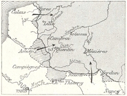 In spite of all their furious attacks, the enemy could not get to the Biesme, but they succeeded in driving a deep and narrow wedge in the French lines in the direction of Four-de-Paris.