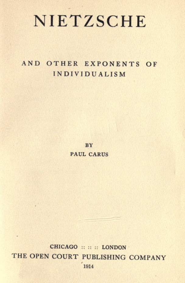 The mental derangement of Nietzsche may be an unhappy accident but it appears to have come as the natural result of his philosophy. Nietzsche, by nature modest and tractable, almost submissive, was, as a thinker, too proud to submit to anything, even to truth. Schopenhauer had taught him that the intellect, with its comprehension of truth, is a mere slave of the will, ancilla voluntatis. Our cognition of the truth has a[Pg 8] purpose; it must accommodate itself to our own interest. But the self is sovereign; the self wants to assert itself; the self alone has a right to exist; and the self that does not dare to be itself is a servile, menial creature. Therefore Nietzsche preaches the ethics of self-assertion and pride. He is too proud to recognize the duty of inquiry, the duty of adapting his mind to the world, or of recognizing the cosmic order of the universe as superior to his self. He feels bigger than the cosmos; he is himself; and he wants to be himself. His own self is sovereign; and if the world is not satisfied to submit to his will, the world may go to ruin. If the world breaks to pieces, it will only cause him to laugh; on the other hand, if his very self is forced to the wall in this conflict, he will still, from sheer pride, not suffer himself to abandon his principle of the absolute sovereignty of selfhood. He will not be a man, human and humane, but an overman (Uebermensch), a superhuman despiser of humanity and humaneness. The multitudes are to him like cattle to be used, to be milked, fleeced and butchered, and Nietzsche calls them herds, animals of the flock, Heerdentiere.
