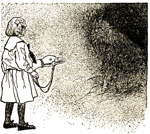 Mother Goose knitted her brows and began to think hard. Suddenly her face brightened. "I'll tell you what I'll do. I'll lend you my gander; and he'll carry you there in short order, however far it is."