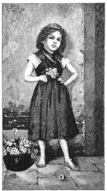 Den lilla flickan med kransen på hufvudet bildade verkligen en älsklig tafla. Det lilla rosiga ansiktet med de allvarliga bruna ögonen, som skyddades af mörka ögonfransar, den skälmskt leende munnen och groparna i kinden tog sig förträffligt ut med den gröna kransen på det lockiga håret.
