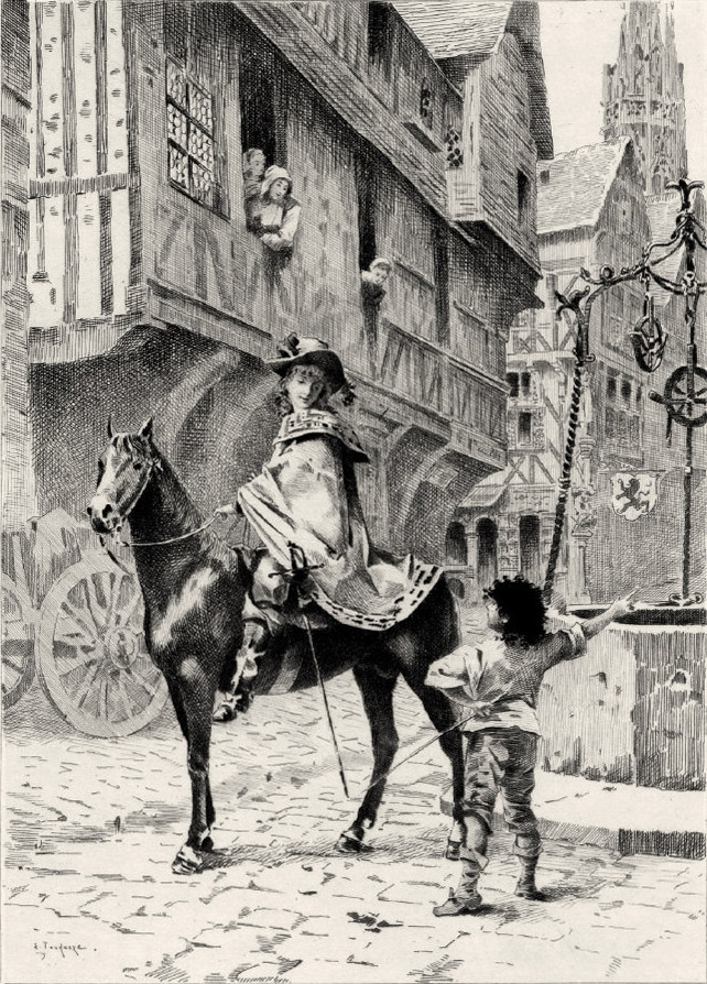 We could not go very fast, for Ninon was not the best horsewoman that ever was, and when her horse trotted she clung with all her strength to the mane.—However, when morning came we were so far away that no one could overtake us except by using great diligence; but we were not pursued, or, if we were, our pursuers took the opposite direction from that which we had taken.