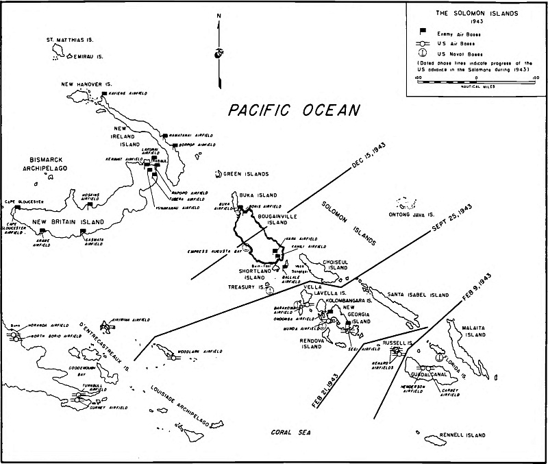 The basic sources for this pamphlet were the second volume in the series History of U.S. Marine Corps Operations in World War II, Isolation of Rabaul, written by Henry I. Shaw, Jr. and Maj Douglas T. Kane, USMC (Washington: Historical Branch, G-3 Division, HQMC, 1963), and Maj John T. Rentz, USMCR, Marines in the Central Solomons (Washington: Historical Branch, HQMC, 1952). Other books used in this narrative were: Adm William F. Halsey and J. Bryan III, Admiral Halsey’s Story (New York, McGraw Hill, 1947); Saburo Hayashi and Alvin D. Coox, Kogun, The Japanese Army in the Pacific (Quantico: Marine Corps Association, 1959); RAdm Samuel E. Morison, Breaking the Bismarcks Barrier: History of U.S. Naval Operations in World War II, vol VI (Boston: Little Brown and Company, 1950); Robert L. Sherrod, History of U.S. Marine Corps Operations in World War II (Washington: Combat Forces Press, 1952); Charles A. Updegraph, Jr., U.S. Marine Corps Special Units of World War II (Washington: History and Museums Division, HQMC, 1972); Col Joseph E. Zimmer, The History of the 43d Infantry Division (Baton Rouge, LA: Army and Navy Publishing Co., 1947); John Miller, Jr., Cartwheel: The Reduction of Rabaul (Washington: Office of the Chief of Military History, Department of the Army, 1959). In addition, in the Marine Corps Historical Center, Washington Navy Yard, Washington, D.C., are the Marine Corps Archives, which contain much primary source material produced by the Marine Corps units in the fighting in the Central Solomons. Also in the Center are the Oral History and Personal Papers Collections, containing many first-hand accounts of the operation.