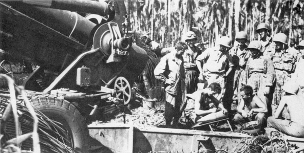 Captain Reichner’s Battery A moved to Piru Plantation on 29 August and two days later began shelling the Vila area of Kolombangara. The move was made by landing craft and foot. Recalled Captain27 William T. Box, with the artillery group’s advance party, “we hiked up from Munda using a native guide. I remember we hiked through jungle most of the way. I remember I was scared. I remember I was glad to see that open area with the supply parachutes” left by the Army. Soon afterwards, Battery B moved to Piru and on 2 September participated in the shelling of Vila. A Japanese defender there with the 8th Combined Special Naval Landing Force wrote in his diary, with “the situation as it is, one just can’t help but distrust the operational plans of the Imperial Headquarters.”