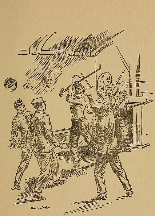 His attention had been caught by a sudden stir on the dock alongside the home-looking “tank.” She was a type of oil carrier familiar to the boy, as many vessels of a similar sort docked in the Erie Basin, New York’s biggest laying-up place for freight ships. This particular craft was black and powerful looking, with two pole masts bristling with derricks, and a tall funnel right astern painted black, with a red top.