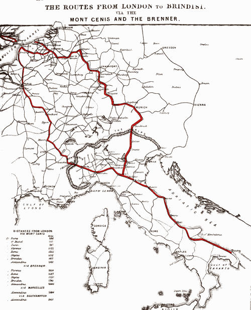 | Routes from London to Brindisi by the Mont Cenis and the Brenner | 14 |