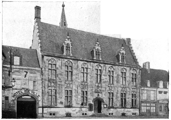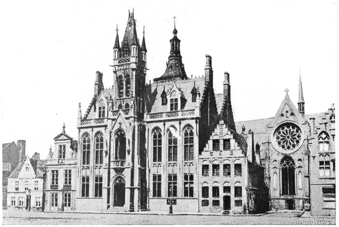 Keeping straight ahead beyond the Grand'Place, in which stands the Renaissance Hôtel-de-Ville, the tourist will notice, immediately on the left, an Old Gate (Westpoort), a vestige of the ancient fortifications. A sycamore tree, probably some four or five centuries old, near by, is said by the inhabitants to have been used by Julius Cæsar as a picket for tethering his horse.