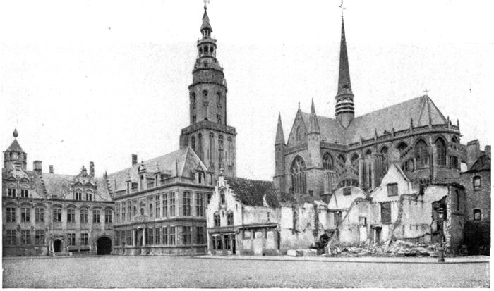 2. The Grand'Place. The Hôtel-de-Ville (on the right), and the ruins of the Church.
