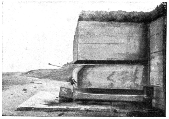 Beyond Caeskerke, cross the Yser; before reaching the bridge, on the left, along the riverside, is a trench with numerous shelters, known as the "Boyau de la Mort" (Death Trench). It was enfiladed by machine-guns posted in the flour-mill on the opposite bank of the Yser (on the right, near the bridge), which the Germans had converted into a fortress. (Photo p. 124.)