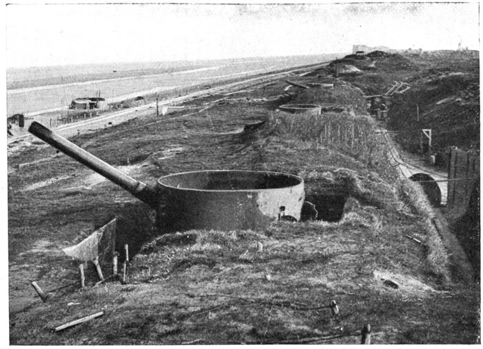 Two great embankments: that of the Yser, arc-shaped, and that of the Nieuport-Dixmude railway, connecting up to the two ends of the former, were the framework of the defence lines. However, the dominating element: water, provided the defenders with a supreme and irresistible arm.
