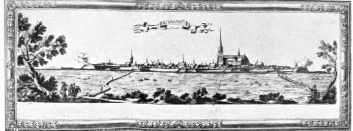 The first shells fell on the church, which was burnt. Fires broke out everywhere and soon destroyed the town. The troops stoically awaited the attack, which came simultaneously from the north, east and south.