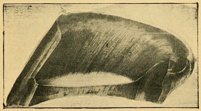 A section of wall enables us to see variations in its thickness. (Fig. 4). It is thickest at the toe, becoming gradually thinner towards the heels; thus affording strength and solidity to resist wear at one part, as well as pliancy at another to ward off concussion.
