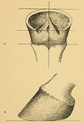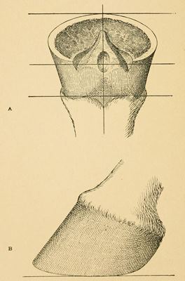 Everyone is familiar with the general appearance of the hoof. It is not a regular geometrical figure. Each of the four feet of the horse shows some peculiarity in form, by which a farrier can at once identify a fore from a hind or a left from a right.