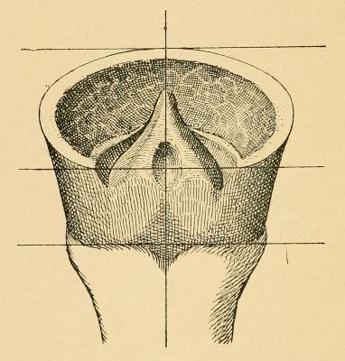 Round the upper circumference on the inside of the wall is a depression or groove presenting innumerable small pits or openings. This corresponds to a part of the sensitive foot called the coronary band, which will be noticed again.
