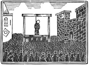 At length the fatal morning came for his first practical essay on the neck of a human being over the top of the castle wall, and in the presence of a vast hideous-looking concourse of people, who hissed at the culprit when he appeared; and strange inconsistency, also hooted the man who was employed to execute the bidding of justice on the object of their detestation!