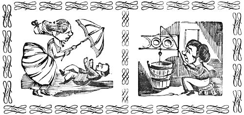 With regard to illustrations, a ballad-printer is in the habit of buying up old wood-cuts which have been engraved for any other works, and of applying them to his own purposes; disregarding alike their age, rudeness, and condition. Most of those adopted are repeatedly employed over and over again. The printers of “broadsides” seldom care whether an ornament of the kind used is, or not, appropriate to the subject of the ballad, so long as it is likely to attract attention. Many examples will be found in this collection, and we are indebted to Mr. H. Disley and others for the use of the same.