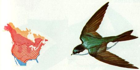 In this book, we have summarized both published data and personal observations on the cavity-nesting birds of North America in an attempt to provide land managers with an up-to-date, convenient source of information on the specific requirements of these birds. Bird nomenclature follows the American Ornithologists’ Union Checklist of North American Birds (fifth edition, with supplements). Bird illustrations and distribution maps are reprinted with permission of Western Publishing Co. from A Guide to Field Identification of Birds of North America by Robbins et al. (1966). The small range maps indicate where birds are likely to be found during different seasons. Summer or breeding range is identified in red, winter range in blue; purple indicates areas where the species may be found all year. Red cross-hatching identifies areas where migrating birds are likely to be seen only In spring and fall. Length measurements (L) are for birds in their natural position, while W indicates wingspan.