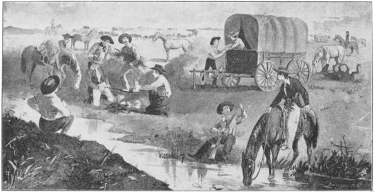 Sir Charles Dilke has recorded the history of “Greater Britain,” but during the lifetime of this frontier boy he has seen with his own eyes the growth of “Greater America.” In the short span of a life still in its prime, he has seen the slow wagon-train crawling over the weary miles of wind-swept prairie harassed by Indians and other foes, and he has seen the long parallel iron rails push their way across the map of the continent until they span it from gulf to gulf and from ocean to ocean. The “prairie schooner” and the pony express have in his time given way to the Pullman coach and the electric wire.