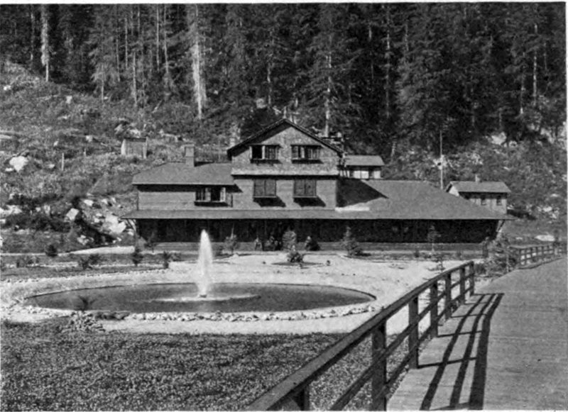 The early morning visitor turns with sharpened appetite to the hotel, if we may call it such,—a little Swiss chalet of picturesque architecture built on an eminence in full view of the lake. Here the tourist may live in rustic comfort for a day, or for weeks, should he desire to prolong his visit.
