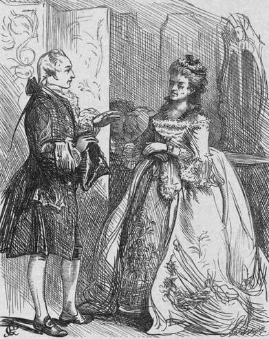 Miss Hard. In which of your characters, sir, will you give us leave to address you? As the faltering gentleman, with looks on the ground, that speaks just to be heard, and hates hypocrisy; or the loud confident creature, that keeps it up with Mrs. Mantrap, and old Miss Biddy Buckskin, till three in the morning? ha, ha, ha!
