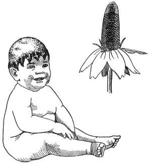When a man of the Puma gens is prepared for the ceremonial naming of his newly born son he sends for the Sho´-ḳa (official messenger) of his gens. On the arrival of the Sho´-ḳa the father puts before him his customary fee of a blanket or blue cloth and a little pipe which he must carry as his official badge. The father of the child then orders the Sho´-ḳa to go and call the Noⁿ´-hoⁿ-zhiⁿ-ga of the Puma, the Ṭsi´-zhu Wa-shta-ge, and the Wa´-ṭse-ṭsi Wa-shta-ge gentes. The Ṭsi´-zhu Wa-shta-ge is the Peace gens of the Ṭsi´-zhu great tribal division, and the Wa´-ṭse-ṭsi Wa-shta-ge the Peace gens of the Hoⁿ´-ga great tribal division. Prominence was given, in this ceremony, to these two gentes because they are the favored people of the sun and the unclouded sky, the most sacred of the cosmic forces. Through these two favored gentes the blessings of peace and long life are invoked for the child to be named and formally given its place in the tribal unit.